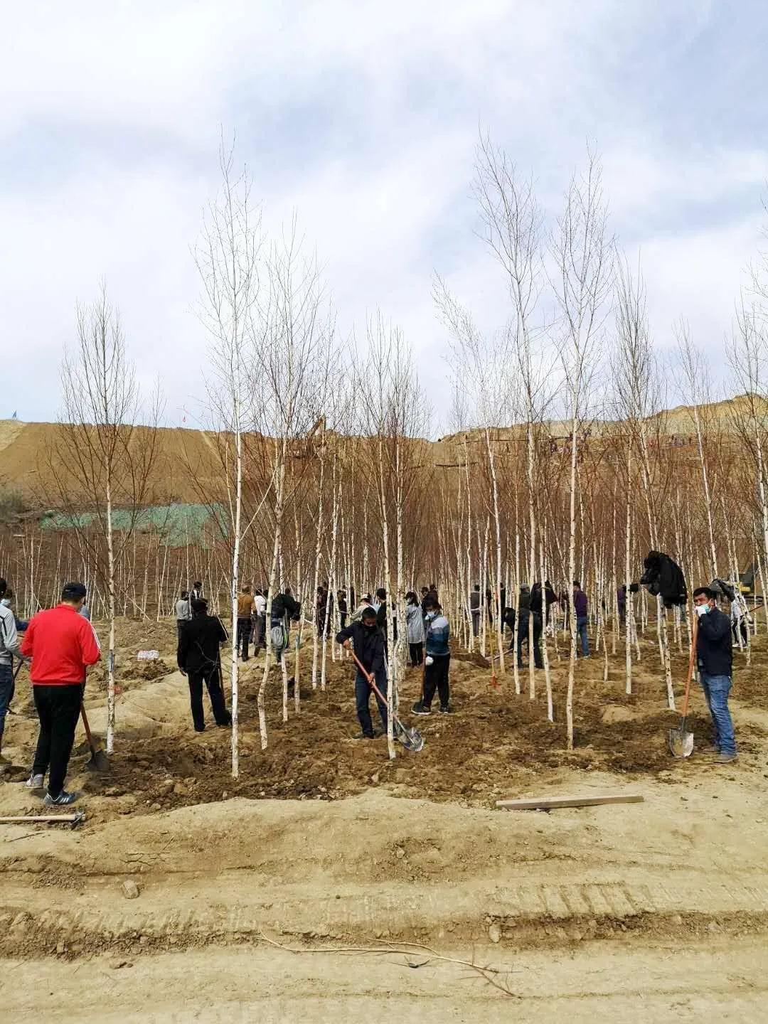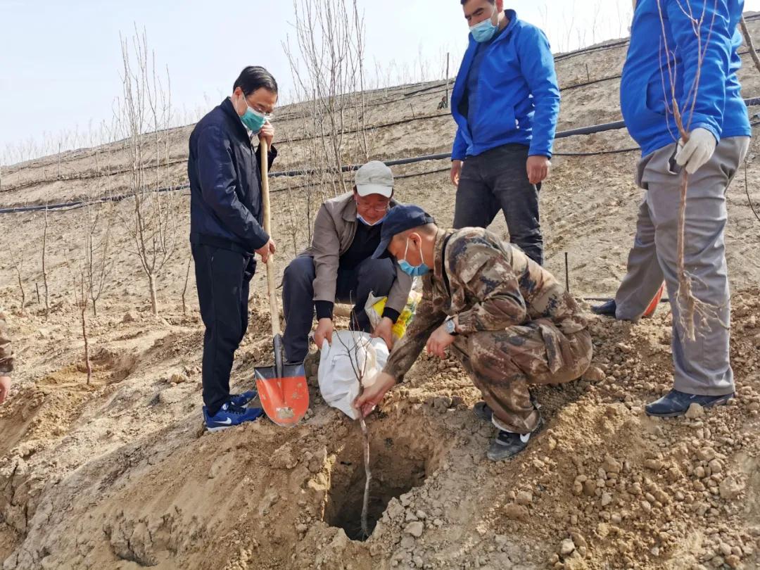 在植树的会战中,各附属医院专门组织力量拿下了山头、取平了弯道、绿化了河床,居来提·赛买提、刘向阳、木合塔尔·阿不力米提、李超等附院负责人带队连续作战,圆满完成了植树任务。植绿中,有的夫妻职工还一起种下了合欢树,有的职工全家齐动员,带着爱人和孩子共同在新校区栽种下一棵幸福树。