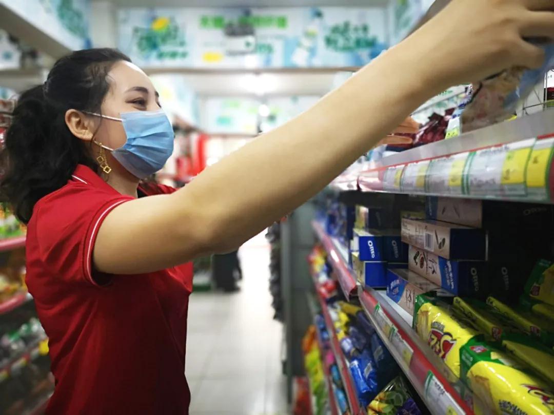 在学苑餐厅对面的新医超市里,凯丽比努尔·阿提拉正仔细地盘点着货架上的商品,并认真做好进出货记录。