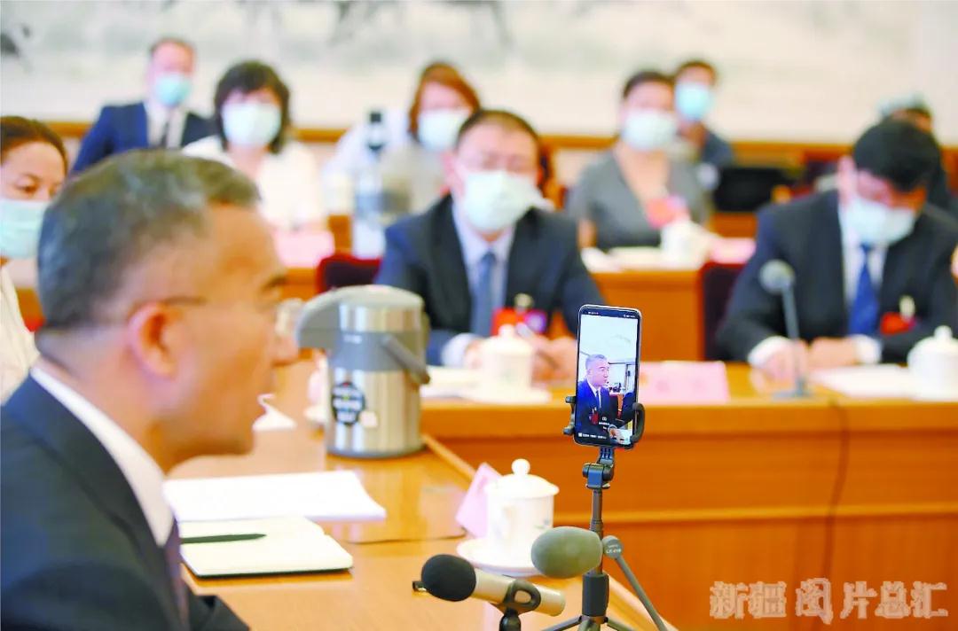 5月23日,出席十三届全国人大三次会议的新疆代表团举行分组会议,审议政府工作报告。国家部委有关负责同志通过视频方式听取意见。