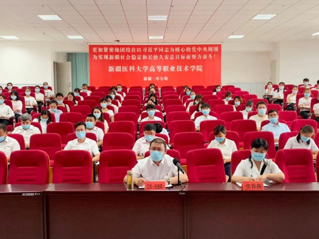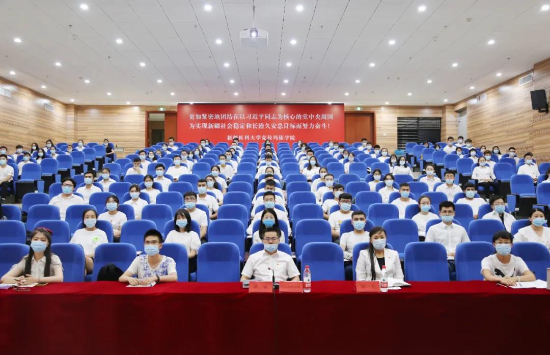 大会以视频形式连线各临床医学院(附属医院)、克拉玛依学院、高职学院(巴州校区)视频会议室,新医路校区800人会议室。全体在家校领导,各职能处室主要负责同志,各学院、各临床医学院(附属医院)党委书记、分管学生工作副书记,全体思政课教师,全体辅导员,学生代表参加了会议。