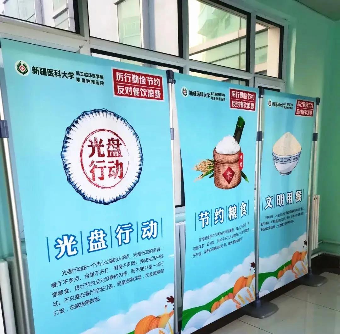 利用LED电子显示屏、楼宇电视,宣传展板、海报,播放和展示制止餐饮浪费的宣传标语,带动广大师生珍惜粮食,发扬勤俭节约的优良作风……在第二临床医学院,除了宣传氛围的营造,教职工们还组成了志愿者团队走进职工餐厅、患者病区等地,现场宣传,倡议大家合理点餐、避免剩餐,做“光盘行动”的实践者,养成勤俭节约的好习惯。