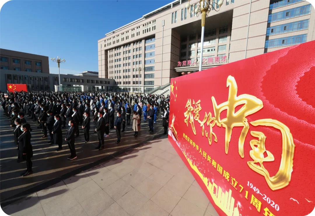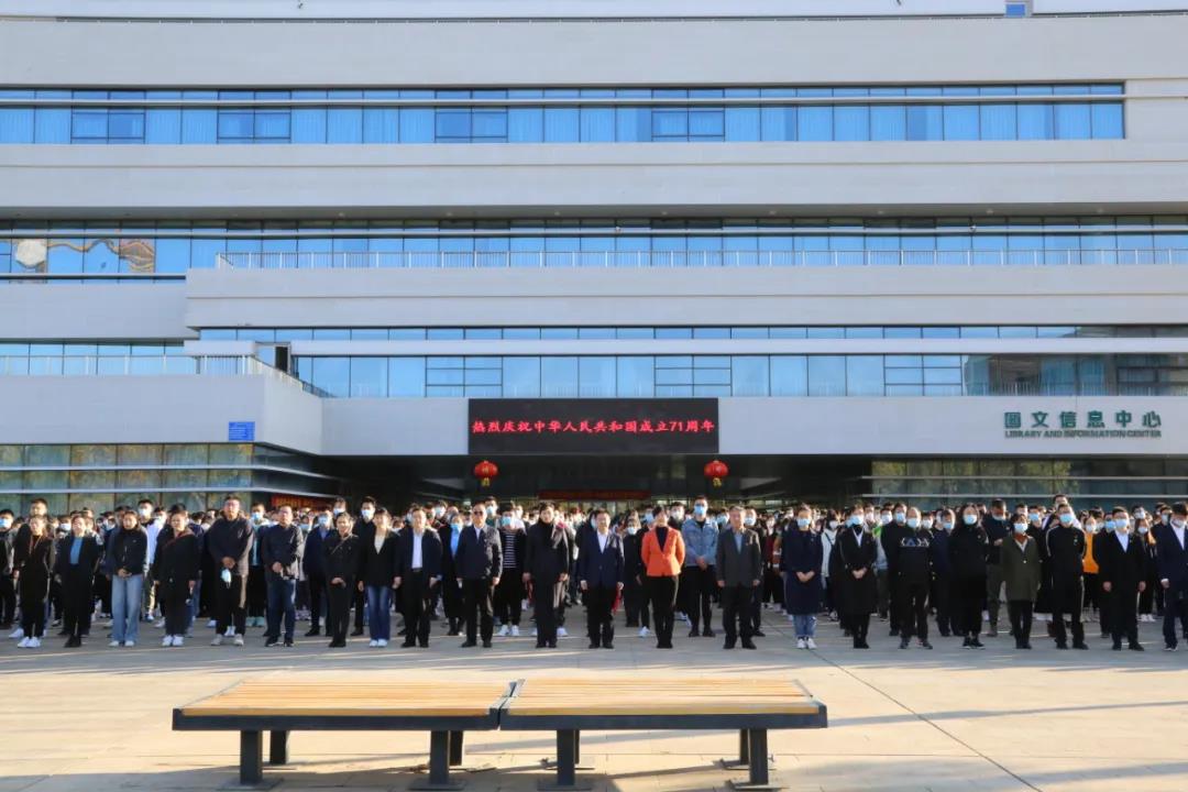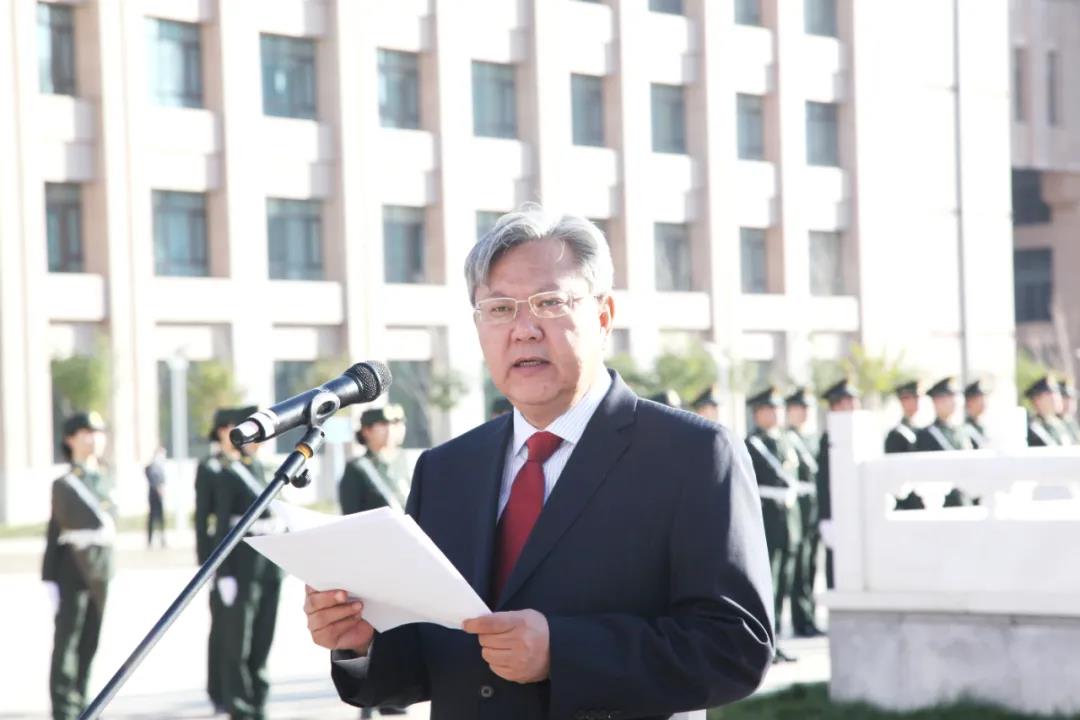 在鲜艳的五星红旗映衬下,校党委书记高发水说,71年前的今天,毛泽东同志庄严宣告中华人民共和国成立,中国人民从此站起来了。71年来,中华民族生生不息绵延发展、凤凰涅槃浴火重生,掀起了气壮山河的建设浪潮,闯出了波澜壮阔的改革之路,张开了拥抱世界的开放胸怀,创造了世所罕见的经济快速发展和社会长期稳定两大奇迹,实现了从落后时代、赶上时代到引领时代的伟大跨越。特别是第三次中央新疆工作座谈会的胜利召开,进一步明确了当前和今后一个时期新疆工作的指导思想、目标任务、方针政策、战略举措,强调要完整准确贯彻新时代党的治疆方略,牢牢扭住新疆工作总目标,依法治疆、团结稳疆、文化润疆、富民兴疆、长期建疆,努力建设新时代中国特色社会主义新疆,为进一步做好新疆各项工作指明了前进方向、提供了根本遵循、注入了强大动力。