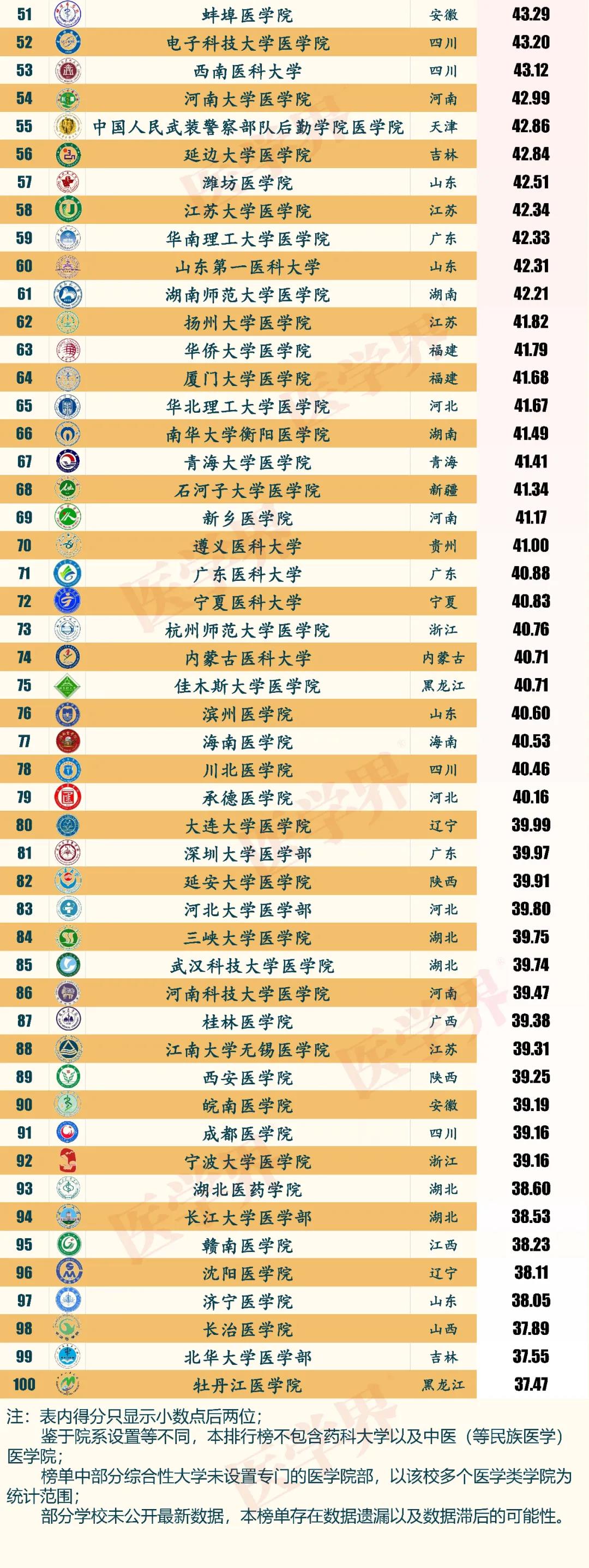本次排名分别是从新生质量、教育状况、毕业生表现三个方面对各家医学院进行衡量。采用极大值法进行计算,总分为100。