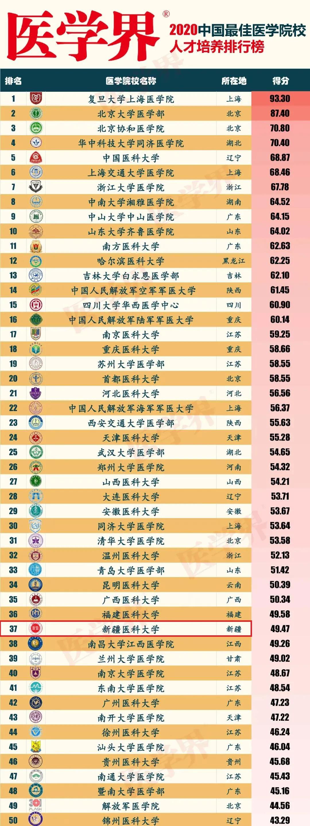 近日,“医学界”《2020中国最佳医学院校人才培养排行榜》发布,beat365唯一官方网站在最佳医学院校中排名第37位。