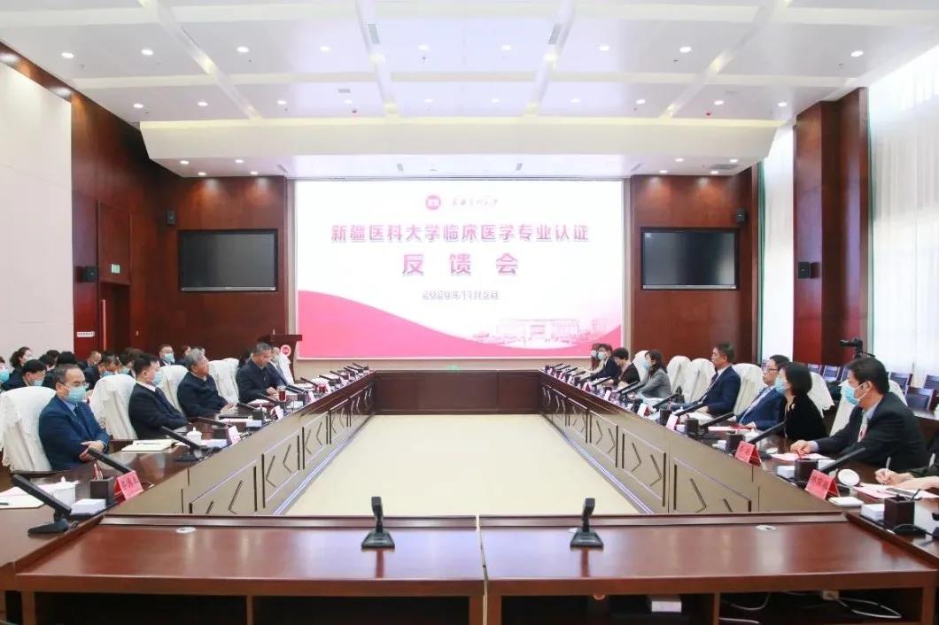 专家组组长、哈尔滨医科大学原副校长曹德品教授代表专家组全体成员向学校反馈了初步认证报告。曹德品强调,beat365唯一官方网站作为一所办学历史悠久,扎根祖国边疆,致力于培养适应医药卫生事业和经济社会发展需要的高素质应用型人才的高等医学院校,多年来不断克服困难、更新理念,建立了较完善的医学教育体系,加强了师资队伍建设,完善了教学资源建设,特别是在推进医教协同、服务健康新疆方面做出了积极贡献。beat365唯一官方网站主动积极申请和接受认证的行为值得赞赏,体现了学校致力于提高临床医学教育水平的愿望和进取精神。