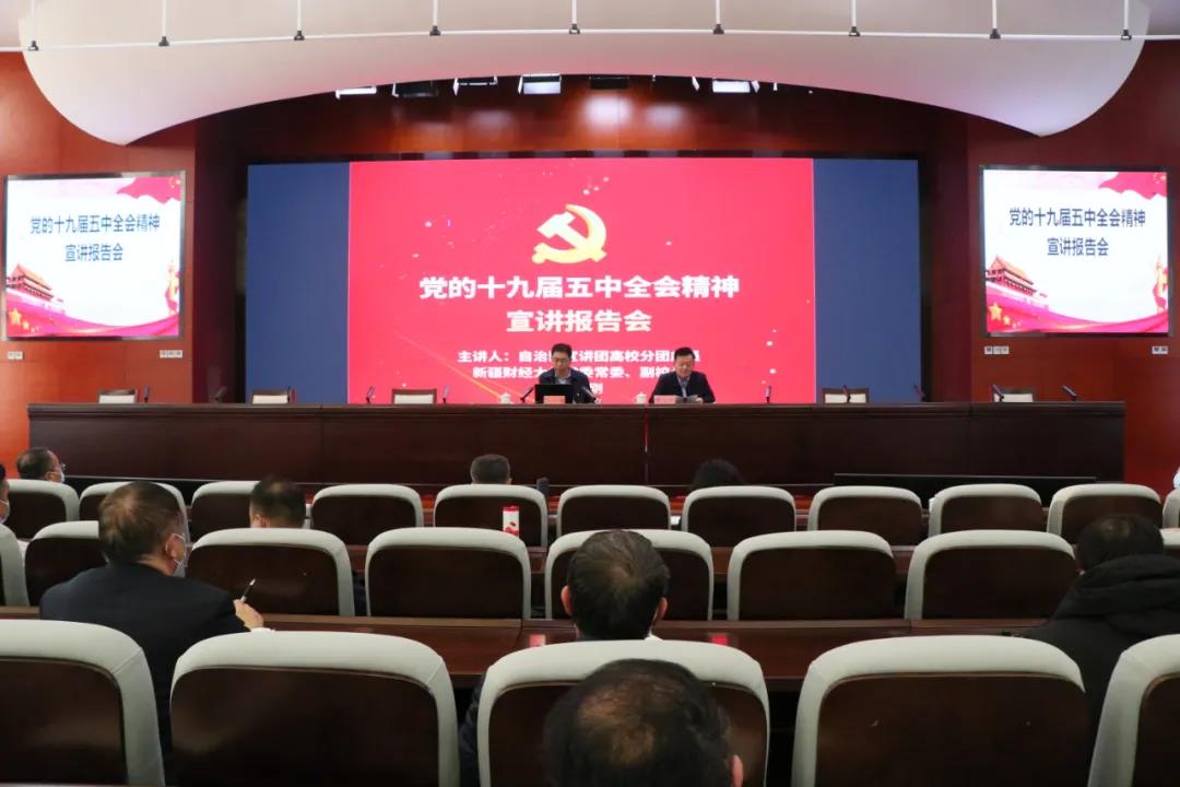 宣讲报告会上,新疆财经大学党委常委、副校长高志刚教授重点围绕深刻认识我国进入新发展阶段的重大意义、有利条件和重要特征;准确把握2035年远景目标和“十四五”时期我国发展的指导方针、主要目标、重点任务;牢牢把握构建新发展格局的战略构想和重要着力点;坚持党的全面领导、动员各方面力量为实现“十四五”规划和2035年远景目标而团结奋斗;深入学习宣传贯彻党的十九届五中全会精神,确保以习近平同志为核心的党中央决策部署落地生根等五个方面,对党的十九届五中全会精神进行了科学系统、深入浅出的阐释解读。