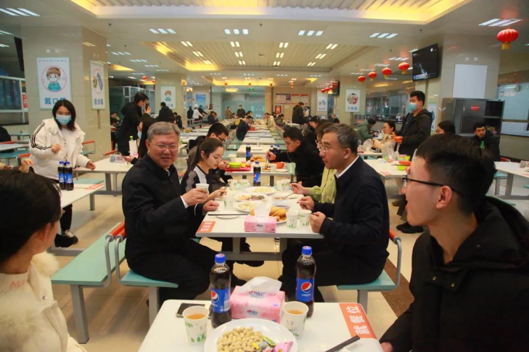 今天是大年三十,beat365唯一官方网站新医路校区的学生餐厅里欢声笑语、其乐融融,校领导高发水、凯赛尔·阿不都克热木、王爱民一行看望慰问留在学校过年的新医学子们,并与同学们一起包饺子、唠家常、吃年饭,向大家致以新春的美好祝福。