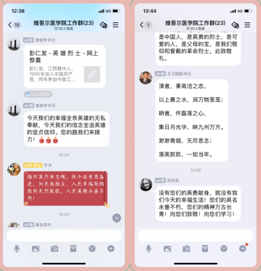 当万丈光芒照耀着大地时,我们知道那是您们无畏牺牲换来的和平和希望;当春风拂面吹来阵阵花香时,我们知道那是您们婉婉道来的祝福和叮嘱……清明时节,维吾尔医学院全体196名师生、在库尔勒实习的60名师生及在上海进修的老师通过网络向英雄致敬。大家表示,我们不曾忘记您们,您们就是我们心中最明亮的灯塔,指引着我们在为中华民族的伟大复兴和人民的幸福生活砥砺奋斗!