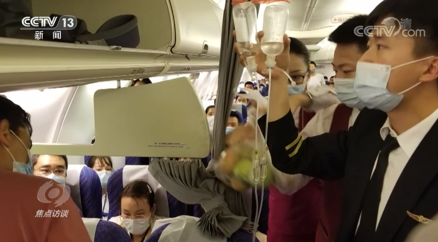地面上,大家为孩子的到来在紧张忙碌,飞机上,乘务长赵燕也在时刻关注孩子的状况,一些乘客主动加入了照看孩子的队伍。