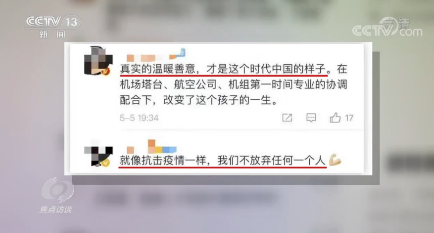 在这场跨越千里的生命接力中,无论是医生、机场工作人员、机组,还是接送患儿的救护车司机、开道护航的交警,抑或包容飞机晚点的乘客,每一个人都全力以赴,他们的爱心和付出,点燃了孩子康复的光亮。大家为孩子感到高兴的同时,更看到了这场接力背后的力量,他们纷纷在网络上留言,表达敬意和感动。