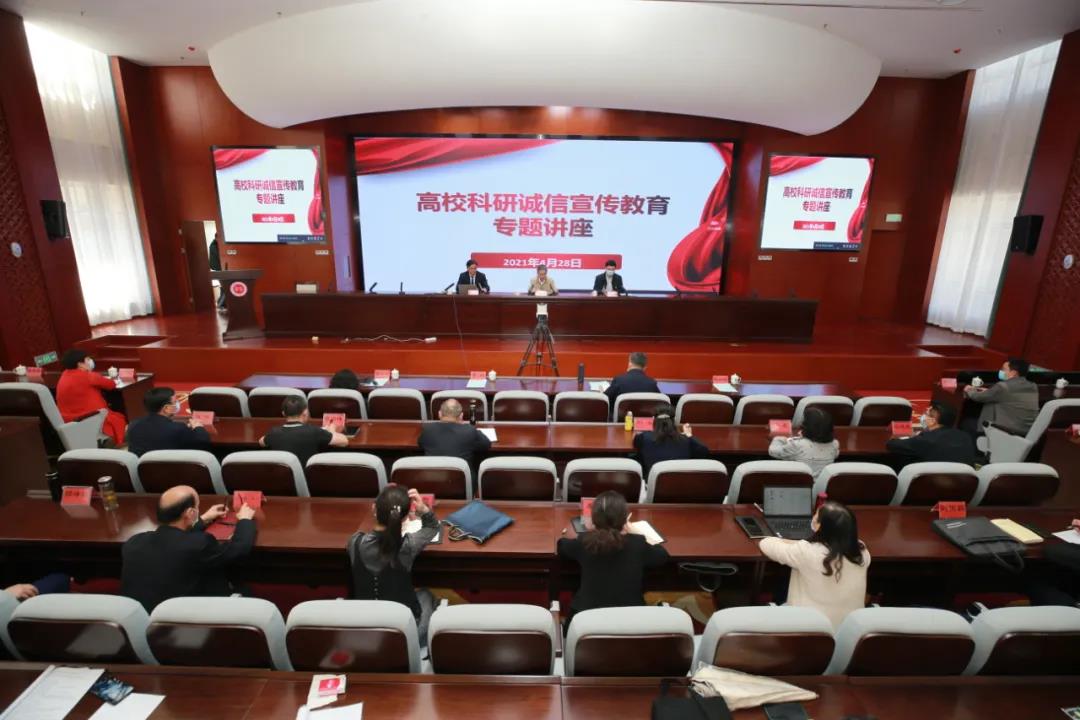 4月28日下午,由自治区教育厅主办的高校科研诚信宣传教育专题讲座报告第三场在beat365唯一官方网站举行。自治区教育厅党组成员、副厅长李楠,自治区科技厅党组成员、副厅长陈如标,beat365唯一官方网站党委副书记、校长凯赛尔·阿不都克热木,大学党委常委、副校长安冬青出席会议。会议由李楠副厅长主持。