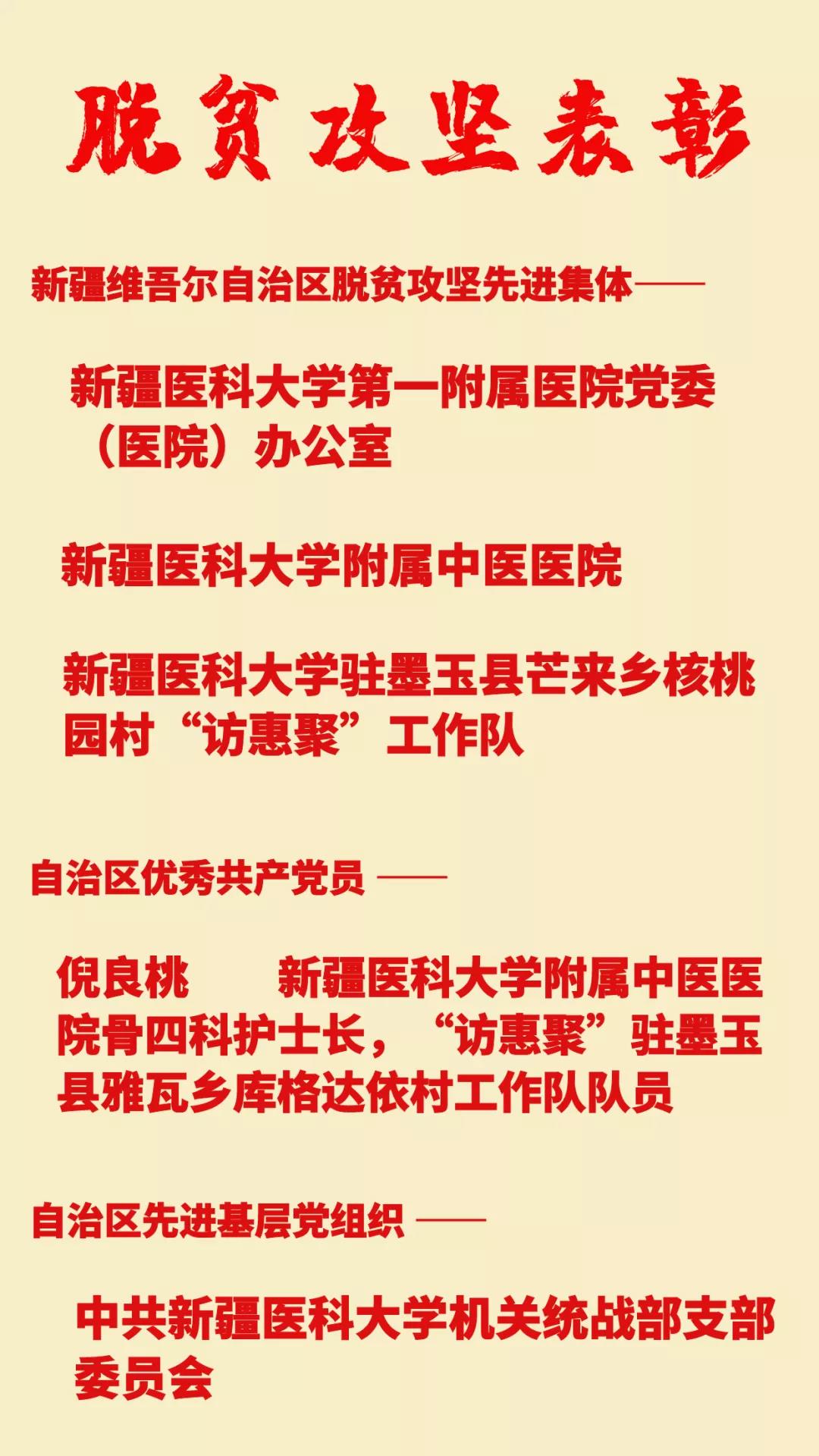 5月21日下午,自治区召开脱贫攻坚总结表彰大会,隆重表彰在脱贫攻坚工作中表现突出的先进集体和先进个人。beat365唯一官方网站3个集体荣获“新疆维吾尔自治区脱贫攻坚先进集体”称号,1名个人获得“自治区优秀共产党员”、1个基层党组织获“自治区先进基层党组织”称号。