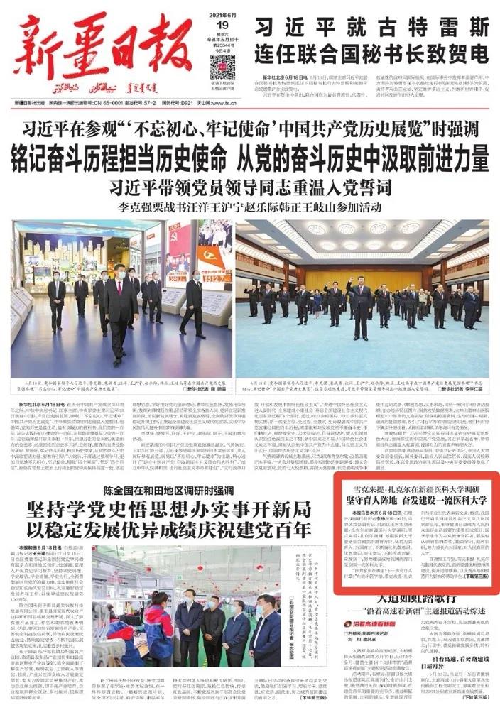 本报乌鲁木齐6月18日讯 石榴云/新疆日报记者李杨报道:16日,自治区党委副书记、自治区主席雪克来提·扎克尔在beat365唯一官方网站调研。雪克来提·扎克尔强调,beat365唯一官方网站要全面贯彻党的教育方针,坚持为党育人、为国育才,不断强化机遇意识、忧患意识、责任意识,不断改革创新、奋发实干,努力建设成为我国西部乃至全国一流医科大学。