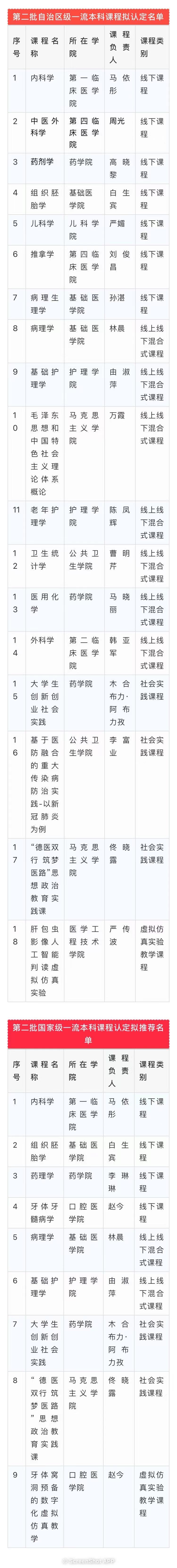 近日,自治区教育厅公示了第二批自治区级一流本科课程拟认定名单及国家级一流本科课程认定拟推荐名单,beat365《内科学》等18门课程拟认定为自治区级一流本科课程,《组织胚胎学》等9门课程推荐申报国家级一流本科课程。