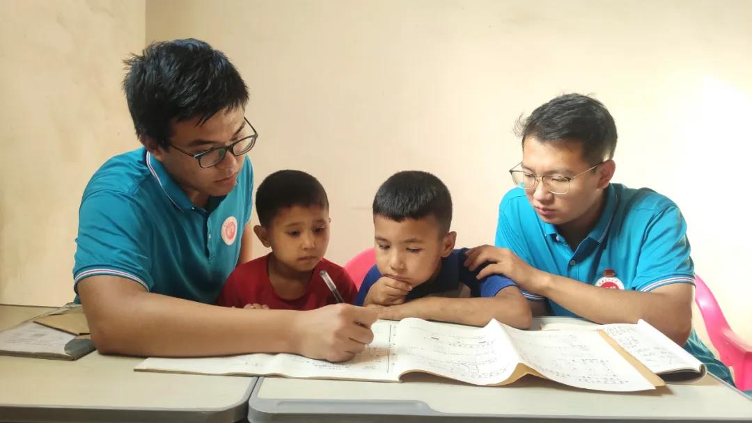 在协助巴夏克其村“访惠聚”工作队开展走访入户、群众工作时,同学们发现很多当地高中的学生在暑假有补习功课的需求。于是,8位同学一拍即合,在村第一书记殷雪峰和全体工作队的大力支持下,“青马班”筑梦行动义教辅导班在巴夏克其村开课了!