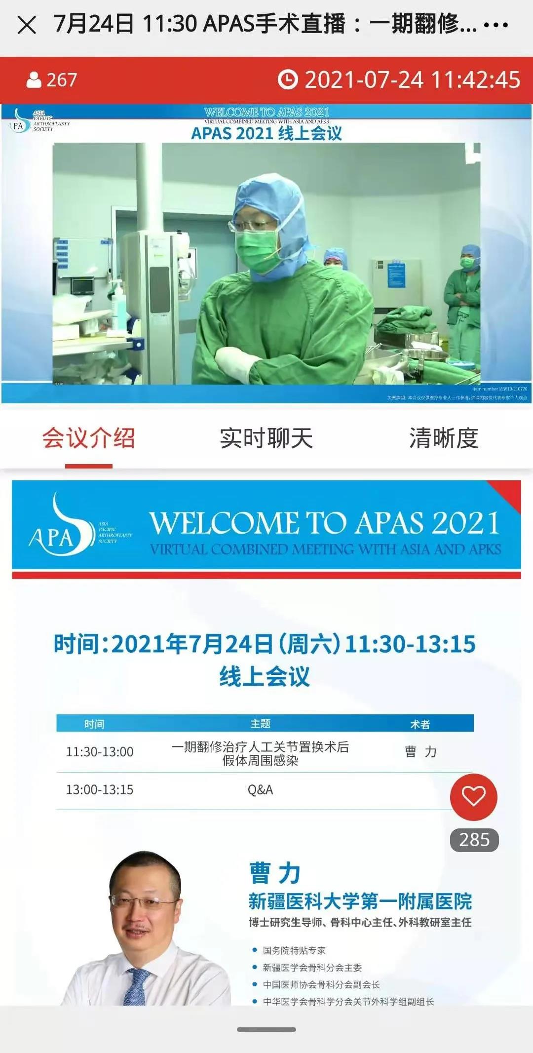 近日,2021亚太关节外科学会年会(APAS2021)于7月在线隆重召开。会议期间,由beat365唯一官方网站第一临床医学院(第一附属医院)和北京积水潭医院代表中国医疗团队,分别开展了一台关节翻修术的全网手术实况直播,向世界分享展示了中国人工关节置换先进经验。曹力教授带领团队实施的一台髋关节置换术后感染一期翻修手术,表明了beat365唯一官方网站第一临床医学院(第一附属医院)关节外科团队在人工关节翻修治疗方面已走到世界前列。