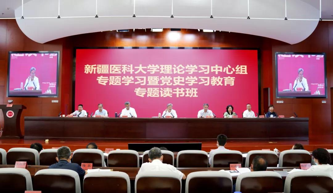 自治区党史学习教育第十六巡回指导组成员、全体在家校领导、厅级干部,全校(含附属医院)副处级及以上干部,各学院党支部书记,马克思主义学院全体教师参加学习研讨会。