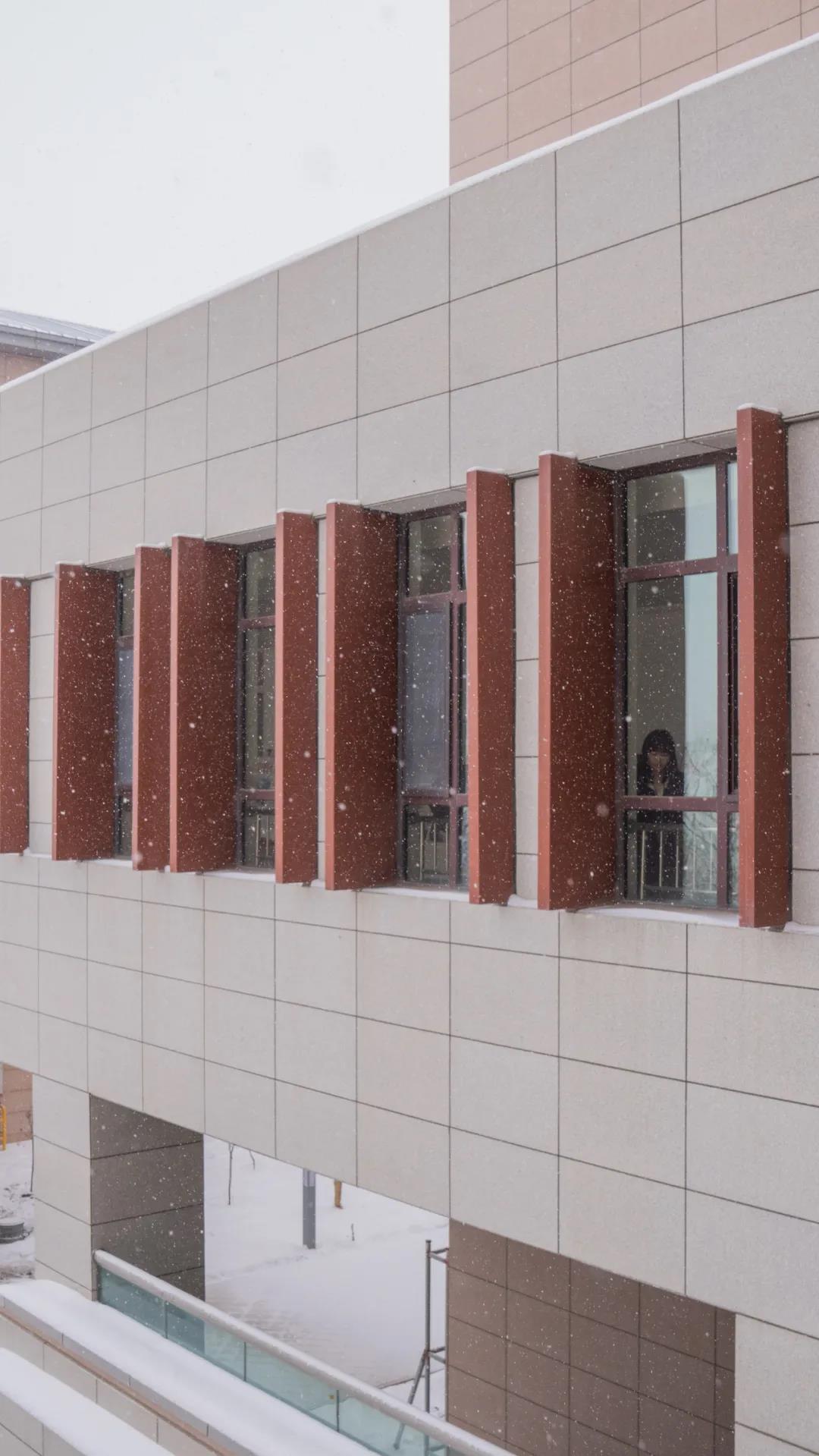 我在连廊里看雪景,看雪景的人在另一处连廊里看我!