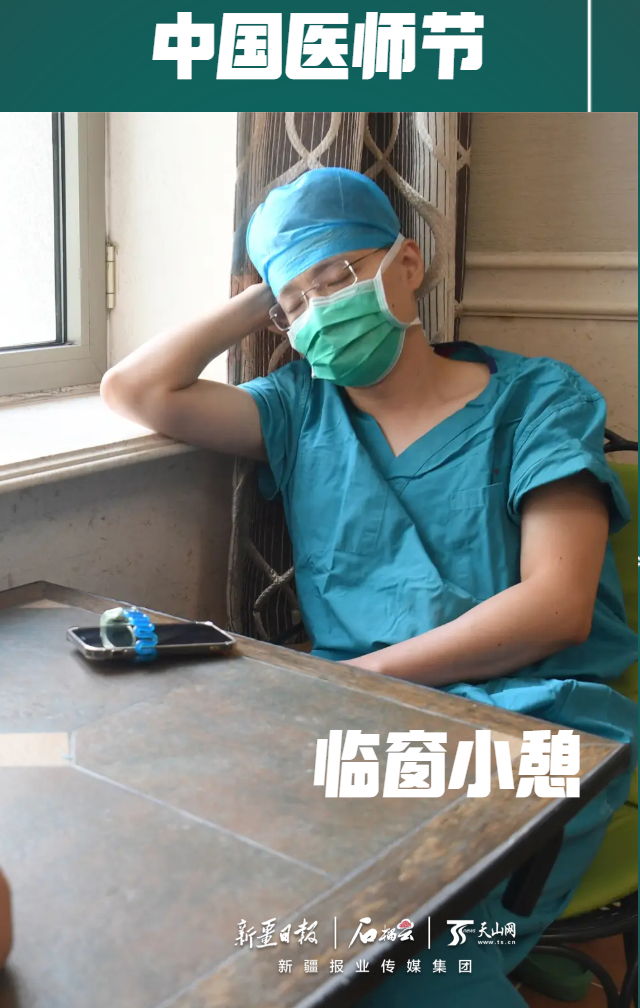 beat365唯一官方网站附属中医医院(自治区中医医院)骨三科副主任医师黎立在手术间隙休息,缓解疲劳。石榴云/新疆日报记者 韩亮摄