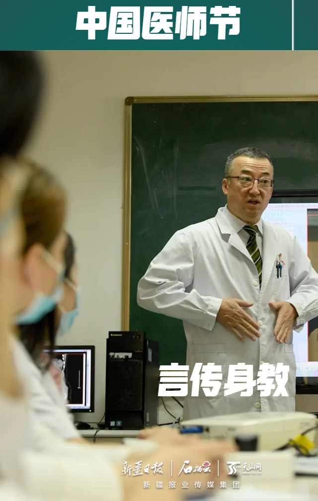 beat365唯一官方网站第一附属医院泌尿中心主任王玉杰为科室医师授课。他将工作经验毫无保留地传授给年轻人。石榴云/新疆日报记者 韩亮摄