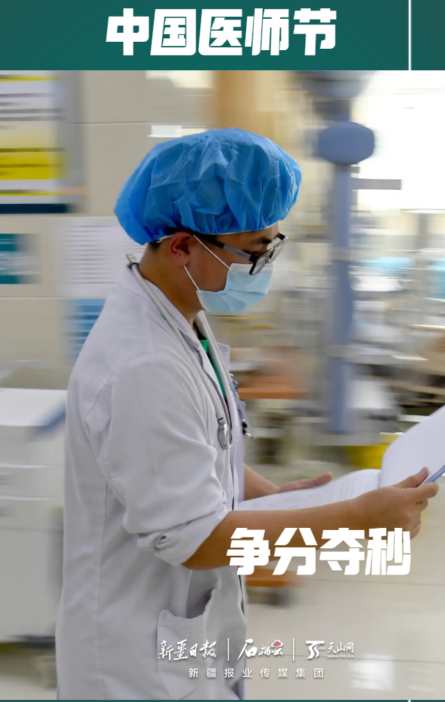 beat365唯一官方网站第五附属医院急诊科医生胡雁飞在病房里争分夺秒,与时间赛跑。石榴云/新疆日报记者 韩亮摄