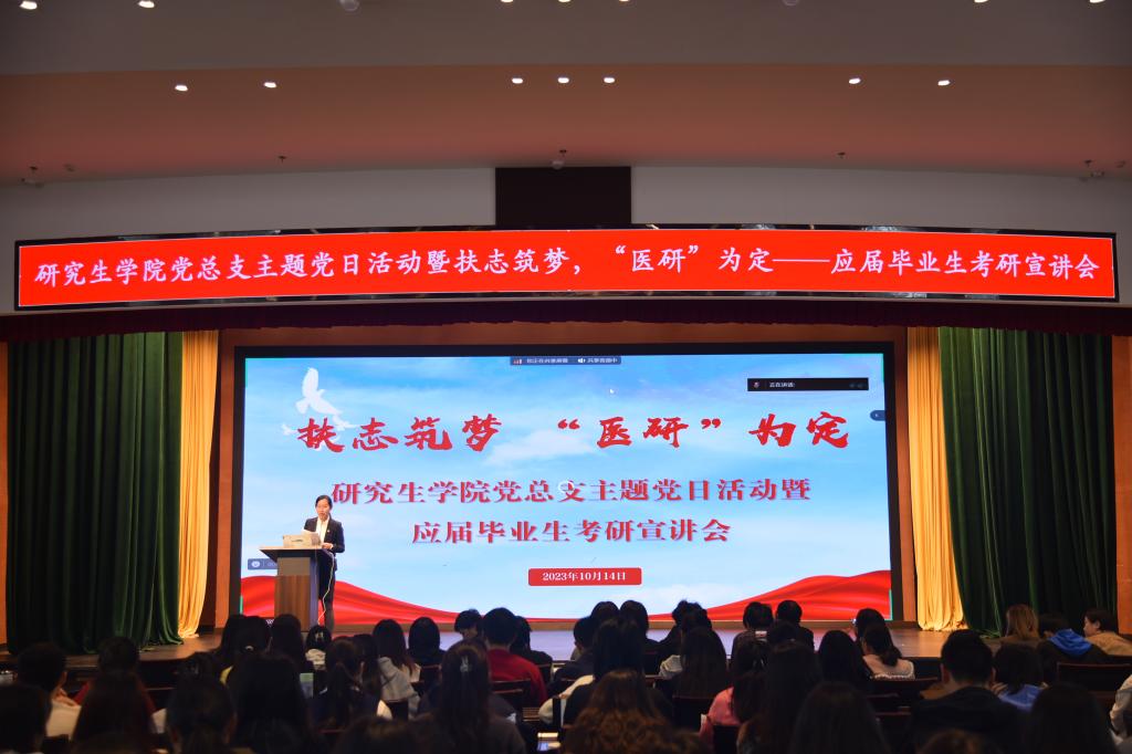 10月14日,beat365研究生学院党总支开展了以扶志筑梦“医研”为定为主题的应届毕业生考研宣讲的党日活动。