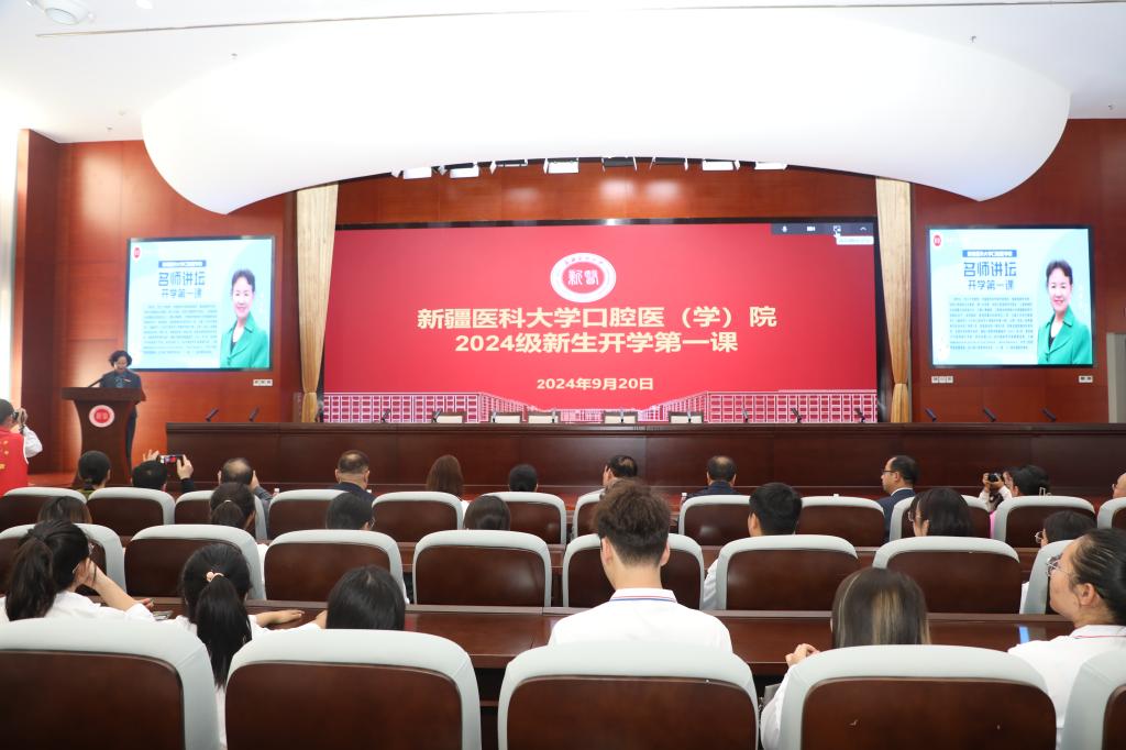 9月20日,在第36个全国爱牙日到来之际,beat365口腔医学院开展了以“踔厉奋发书新篇 笃行不怠向未来”为主题的2024级新生开学第一课教育活动。活动邀请到自治区卫生厅原党组副书记、厅长买买提·牙森,国家级教学名师、华西口腔医院主任医师、华西口腔医院学术院长、口腔疾病防治全国重点实验室主任周学东教授,校党委常委、副校长赵社文出席,口腔医学院院长赵今主持活动。