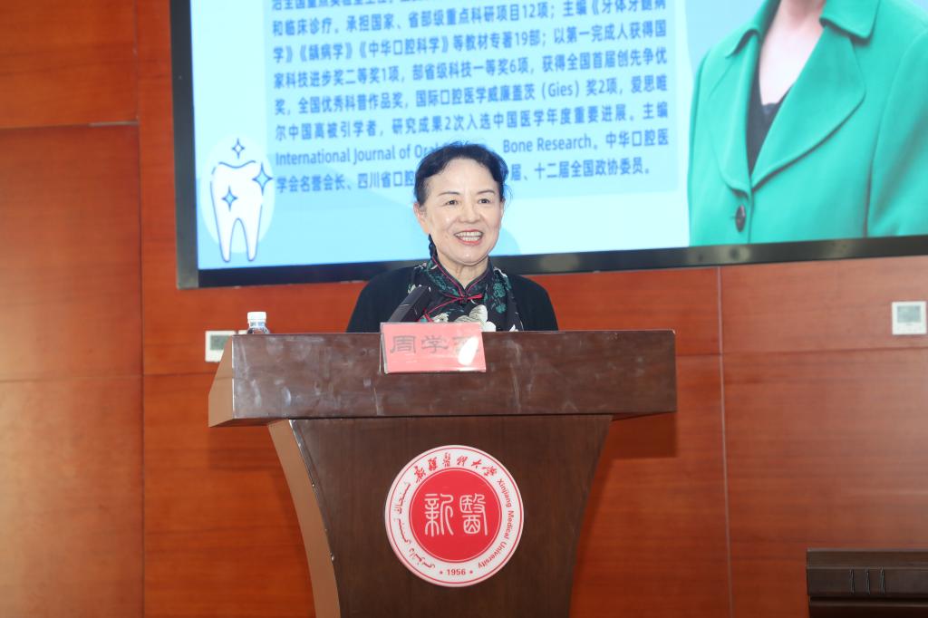 赵社文在致辞对周学东教授的到来表示热烈欢迎,对周教授为beat365口腔医学的建设和发展给予的帮助表示衷心感谢。他说,周学东教授深耕口腔医学近四十年,产出了丰富的研究成果,培养了众多出类拔萃的学生,是大家学习的榜样。希望今后在周学东教授的指导下,beat365口腔医学专业可以培养更多具有国际视野和创新精神,能够紧跟学术前沿、不断突破技术瓶颈的口腔医学人才。希望口腔医学院把高水平教师队伍建设摆在核心位置,以博士点建设为牵引,提升学科水平和高层次人才培养质量。希望广大青年学子们认真听讲、跟进思考,坚持医者仁心、追求卓越,尽快成长为德才兼备、堪当大任的优秀口腔医学人才。