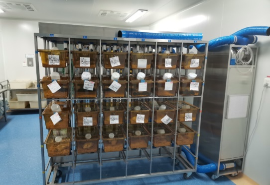 2019年以来利用中财专项支持,中心完成了以实验动物生产为主到动物实验研究为主的转型,争取资金1500万元,先后建成11个技术共享平台,包括:实验动物平台2个(实验动物生产繁育平台、转基因/敲除动物实验平台);动物实验平台9个(实验动物分子生物学/生化检测平台、实验动物细胞生物学平台、实验动物组织病理分析平台、实验动物影像分析平台、实验动物行为学评价平台、实验动物代谢监测评价平台、品系大动物实验技术平台、疾病动物模型研究平台、胚胎冻存孵育平台)。年承接涉及动物实验科研项目600-800项。