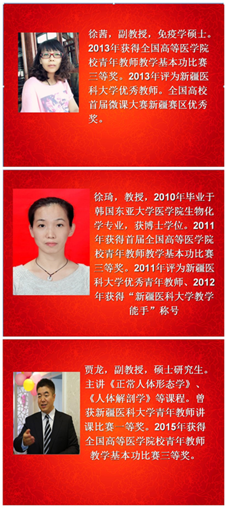 基础医学院精心遴选的三位优秀青年教师,长期在一线从事教学工作,教学经验丰富,得到广大师生的喜爱,曾代表beat365参加中华医学会青年教师教学基本功比赛并获奖。三位教师从课程地位与作用、学情分析、教学目的与重点难点、教学资源与教学策略、教学评价与反思等多方面进行了精彩的介绍,并进行了示范性讲授。此次活动得到观摩教师的高度评价,认为三位老师的示范性授课各具特色,呈现出个人教学艺术中的亮点,在教学艺术、授课方法、教学经验和课程设计等方面带给大家借鉴和启迪。