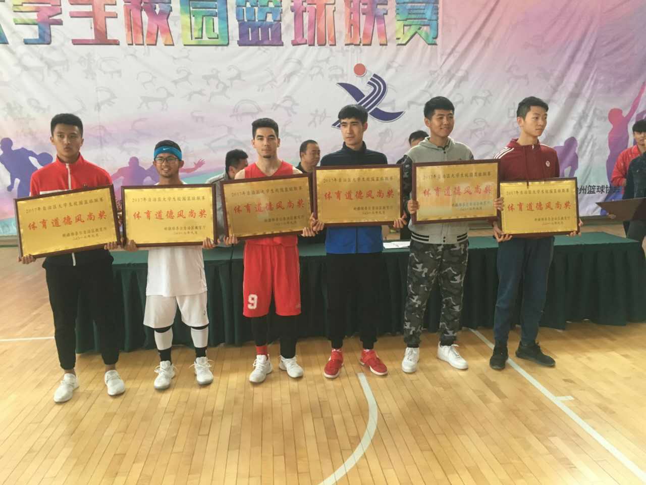 2017年自治区大学生CUBA篮球赛9月21日-27日在昌吉学院开赛,beat365唯一官方网站男子篮球队夺得大学男子甲组季军的历史最好成绩,并获得“体育道德风尚奖”。