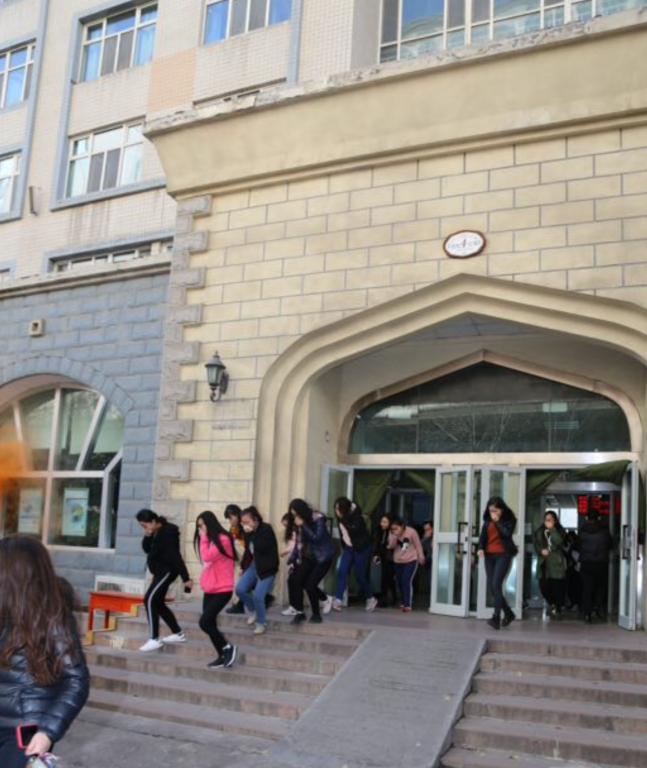 消防应急疏散演练活动严格按照方案组织进行,薛继海副书记在工作人员报告消防应急演练工作准备完毕后,下达了疏散演习开始命令,顿时14层女生公寓楼内浓烟四起,火灾警报启动,师生按照学院老师、保卫处工作人员的引导,有序的从各消防安全疏散通道疏散,并迅速在篮球场集结,新医路消防中队5名官兵接警后迅速来到演练现场灭火救援,根据演练设计,消防云梯车升至7楼成功救出709宿舍一名被困学生。校医院救护车及医护人员接警后及时赶到演练现场参与救援。整个疏散过程既紧张、激烈,又有条不紊,用时4分30秒。