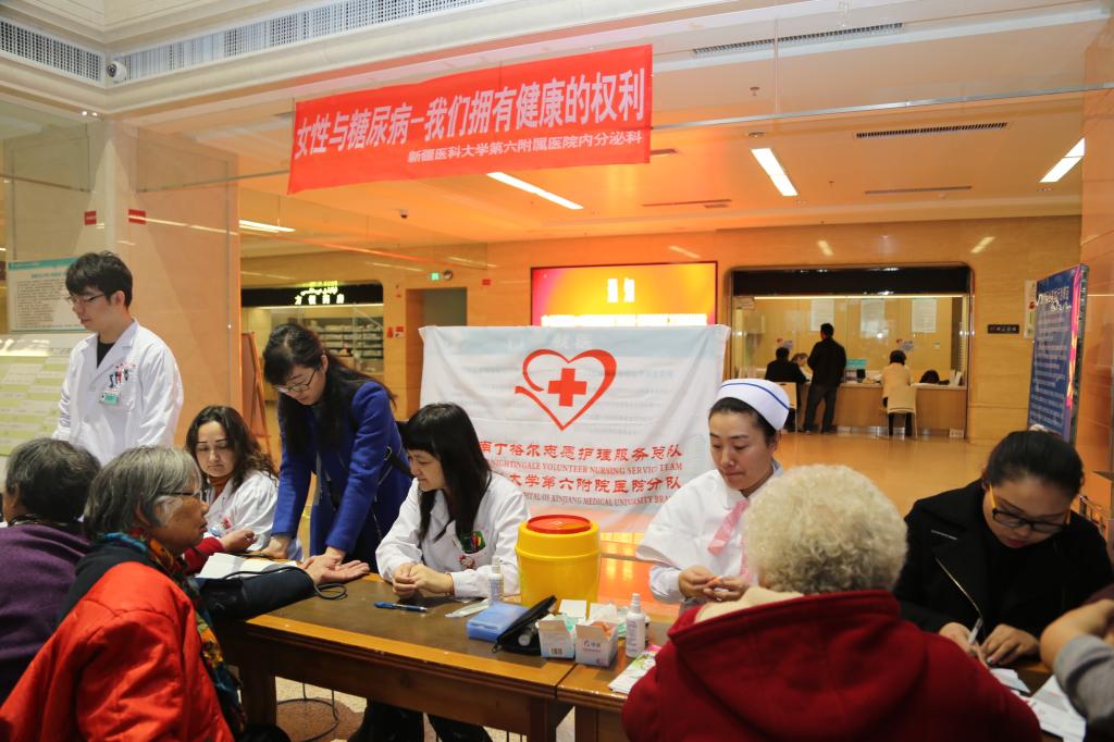 11月14日是第11个“联合国糖尿病日”。13日上午,beat365唯一官方网站第六附属医院内分泌科一组在举行了“女性与糖尿病 我们拥有健康未来的权利”为主题的大型义诊活动,为群众提供义诊服务、开展健康宣教。