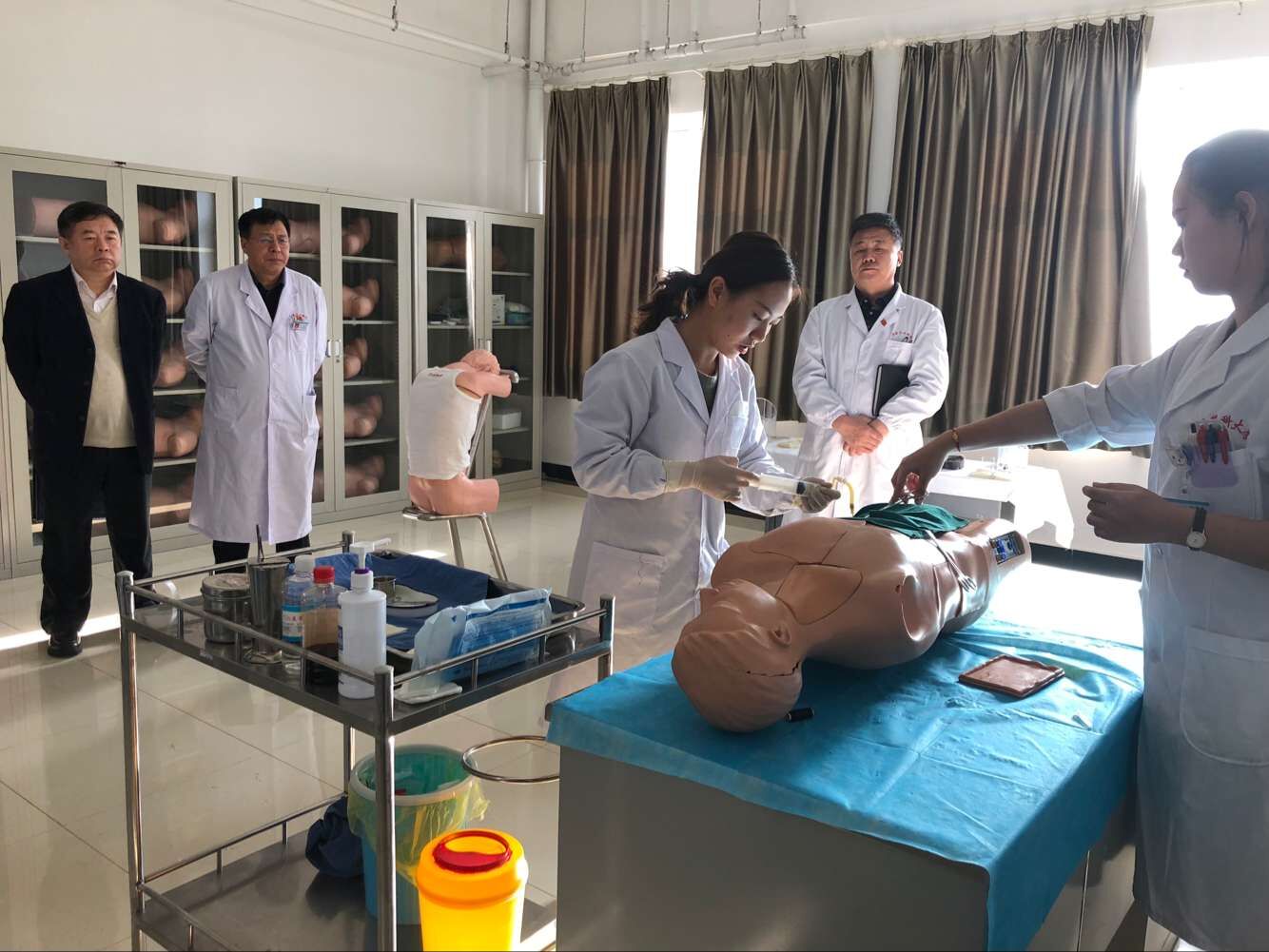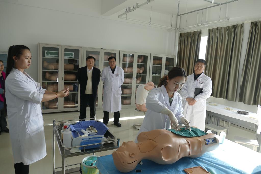 会后,调研组专家实地考察了第五临床医学院技能中心,观看了实习生技能训练,并对教学管理文档资料进行模范指导。