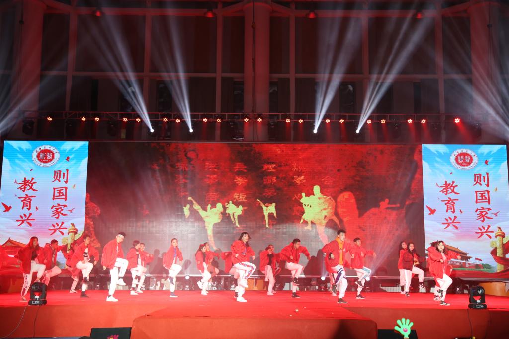 古典舞蹈《梁祝》、师生歌伴舞《说唱脸谱》及现代舞《赞赞新时代》,用曼妙的舞姿表达了弘扬中华民族传统文化的信心。《旗秀》《东方迷彩》等动静结合的T台形体展示,展现了克拉玛依学院新时代青年的昂扬风姿。朗诵《承千年精粹,修德运之人》、舞蹈《中国制造》用新颖的舞台形式讲述了传统文化之美,更充分展示了青年学生的青春与活力,赢得了一阵阵掌声和欢呼声,把晚会的气氛推向高潮。最后,晚会在全体师生《不忘初心》的合唱中圆满落幕。