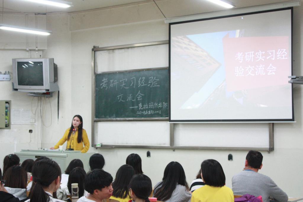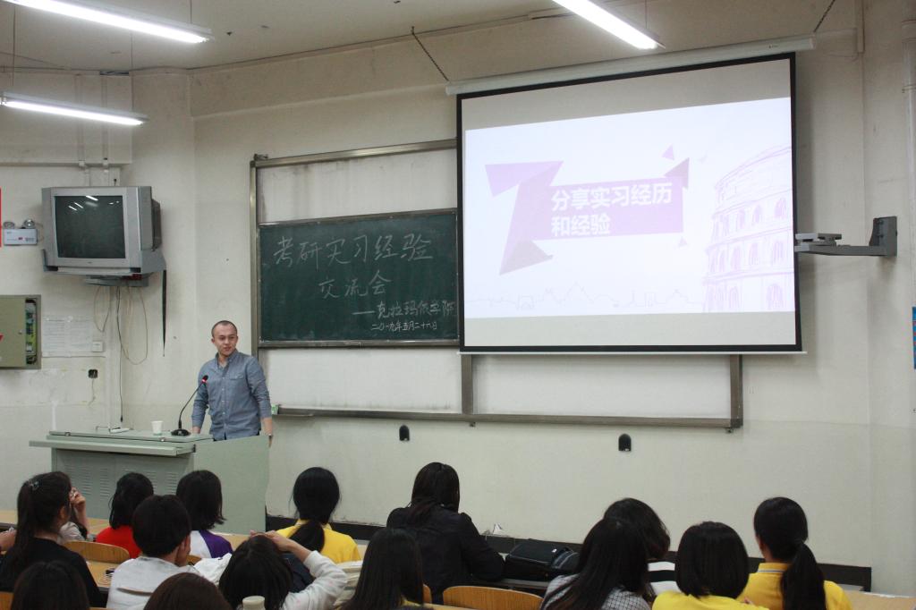 beat365唯一官方网站克拉玛依学院北校区于5月26日晚开展了“分享•交流•进步”考研、实习经验交流会,邀请伊木让•哈米提、杜家虞、陈泰安等七位分别被beat365唯一官方网站、苏州大学等四所院校录取的同学分享考研经验,肖星宇、依克热木•卡的尔等四名优秀实习生代表分享实习经验,助力北校区2015级临床医学学生们备战即将面临的考研和实习。