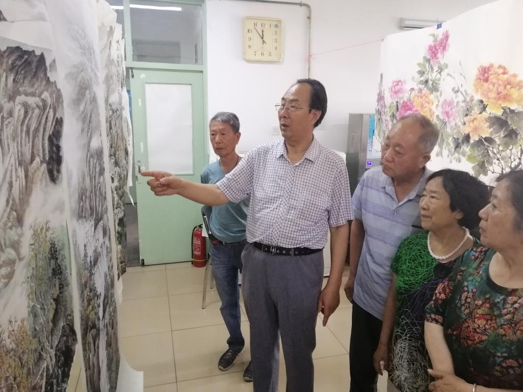 在中国共产党建党98周年之际,自治区老干部书画学会张虎仁会长和学会书法老师与beat365离退休职工书画小组约30多位学员进行了座谈,详细了解了书画小组的学习活动和工作情况,并集中点评了各位书画学员的书画作品。