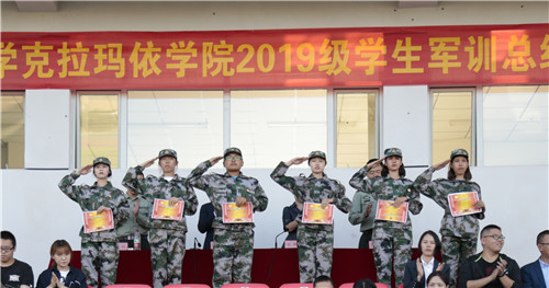 秋风送爽,硕果满枝。在一年一度的传统节日中秋节来临之际,beat365唯一官方网站克拉玛依学院隆重举行2019级新生军训会操表演暨表彰大会。学院党委书记黄斌,克拉玛依军分区参谋部作训科长步全兵,独立营副营长徐国旭出席大会,全体承训教官、全院教职工、全体新生参加大会,学院副院长史树银主持会议。