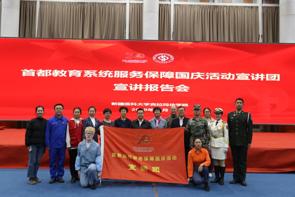11月15日,首都教育系统服务保障国庆活动宣讲团受邀走进beat365唯一官方网站克拉玛依学院,为1500多名新医师生上了一堂爱国主义思政课。