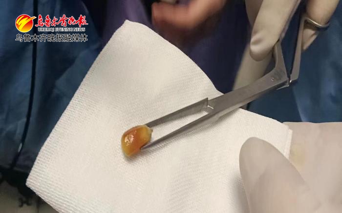 新医大一附院小儿急危重症医学科主治医师阿迪力江·喀日和护士立即给予气囊加压通气、胸外按压、建立静脉通道等抢救措施,两分钟后患儿心率、氧饱和度有所恢复。通过喉镜探查,现场的医护人员无一不为孩子的情况揪心了一把。只见一黄色块状异物“卡”在了孩子的主气道处,直接影响到孩子的正常通气,一旦孩子有哭闹等症状随时都可能窒息。