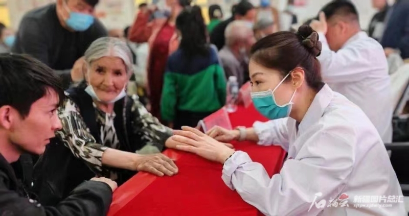 吾布力喀斯木患有糖尿病,在beat365唯一官方网站第一附属医院近期开展的义诊活动上,来自北京中医药大学的医生为他测血糖、血压,详细了解病情后,指导他调整用药剂量。