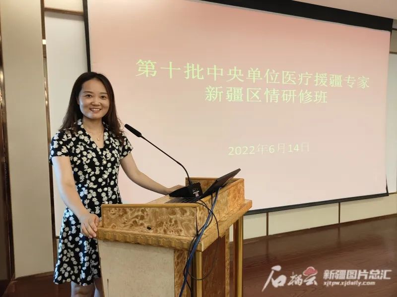 援疆期间,郭佳在做报告