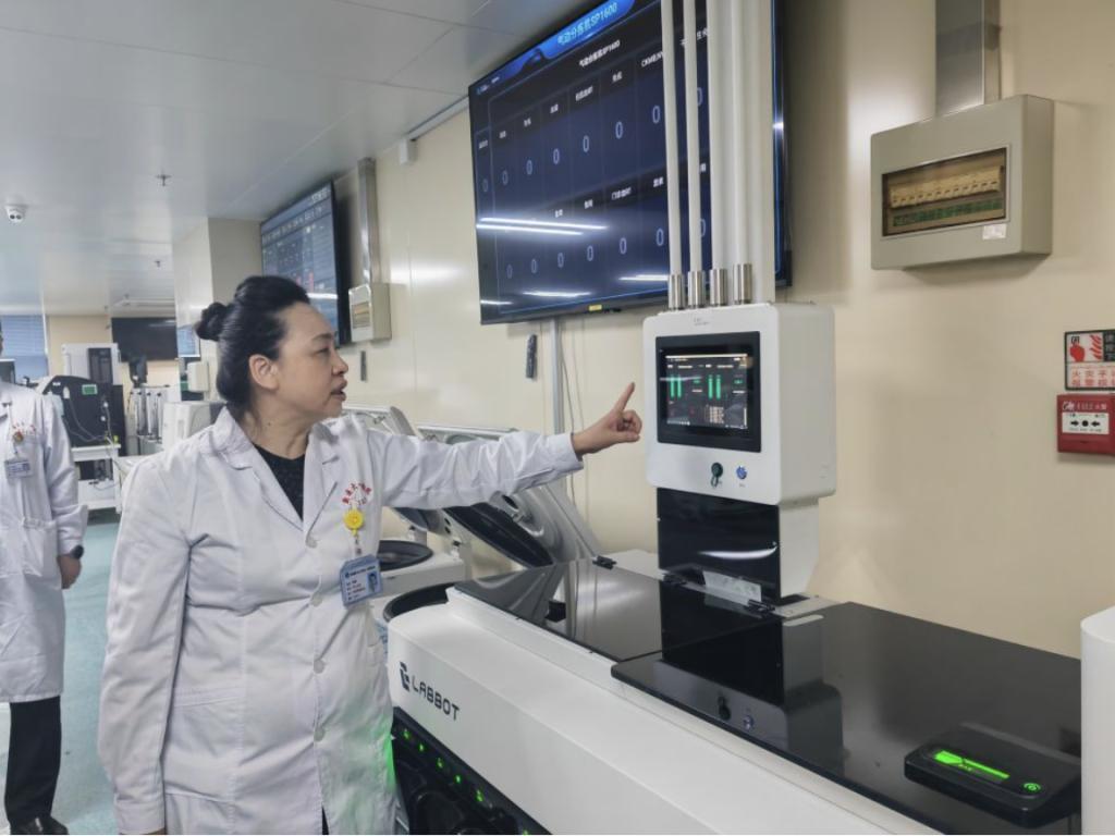 beat365唯一官方网站一附院无人值守医学检验流水线系统已在门诊投入运行。(新华社记者 潘莹 摄)
