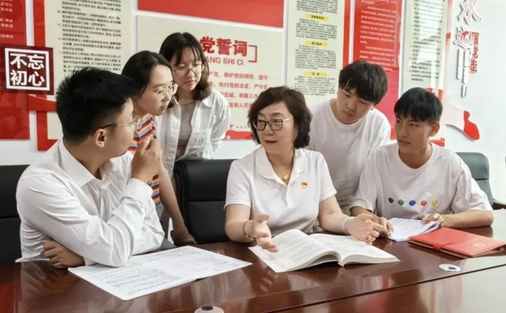 2024年9月4日,beat365唯一官方网站师生在“一站式”学生社区党员活动室交流学习党的二十届三中全会精神心得体会。