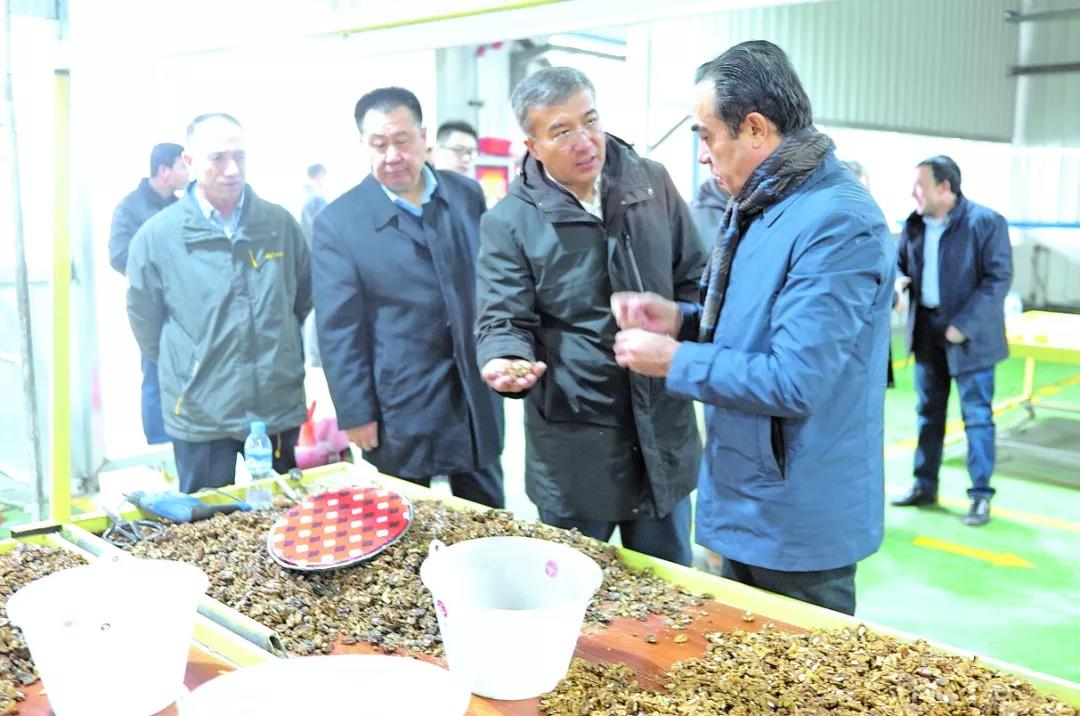 2月7日,凯赛尔·阿不都克热木代表(右二)在墨玉县扎瓦镇了解农产品种植农民专业合作社的情况。 (图片由本人提供)