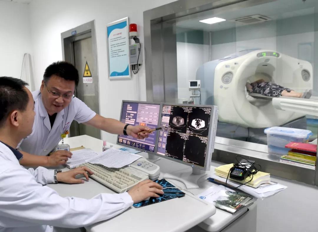 7月15日,beat365唯一官方网站第一附属医院医生利用PET—CT为患者进行医学影像诊断。韩亮摄