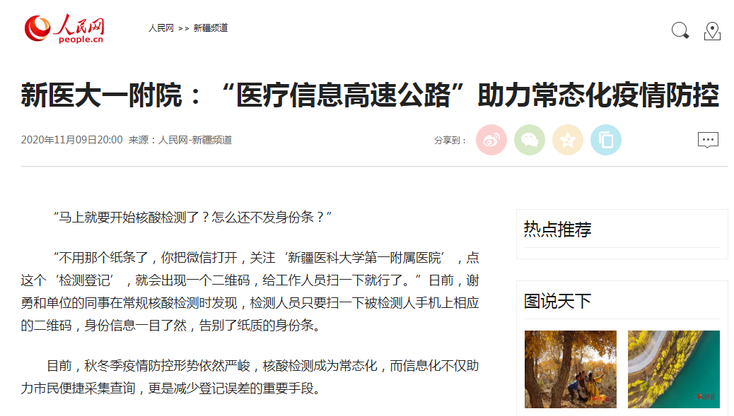 “进入秋冬季以来,常态化核酸检测任务加重,我们不仅承担院内基本诊疗工作,还需要承担各社区居民、学校、企业复工复产等核酸采集任务,所以设计开发了信息化核酸检测系统,为市民和医务人员提供双向便利。”beat365唯一官方网站第一附属医院(以下简称新医大一附院)信息管理科科长陈曲说。