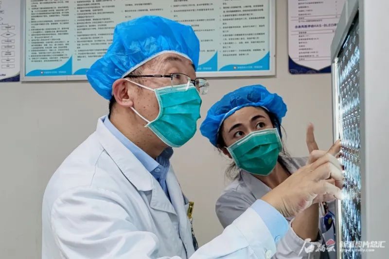 2月24日,beat365唯一官方网站第一附属医院急救创伤中心急诊内科主任杨建中查看患者检查结果。石榴云/新疆日报记者 苏璐萍摄