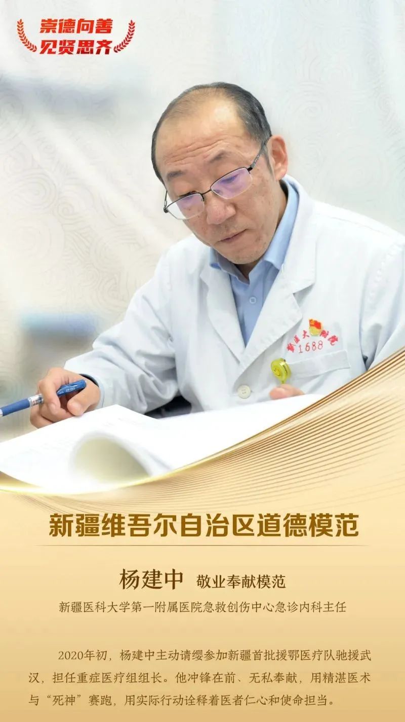 杨建中被评为第七届自治区道德模范。于他而言,荣誉是新的起点,“在今后的工作中,我会以其他道德模范为榜样,以优秀医学前辈为标杆,在为民服务的道路上砥砺前行。”