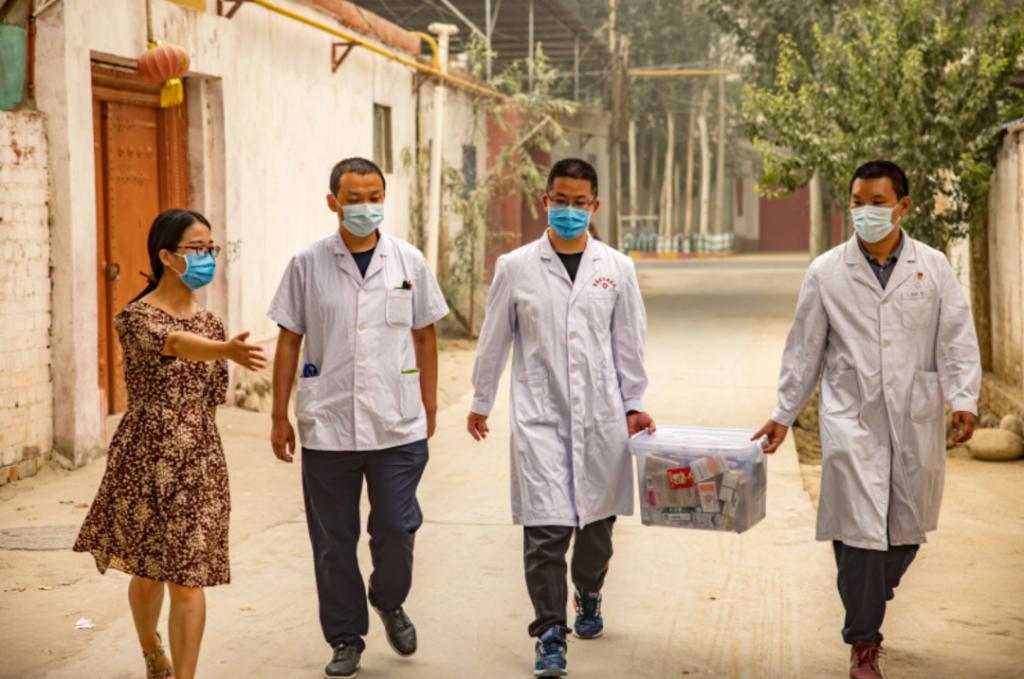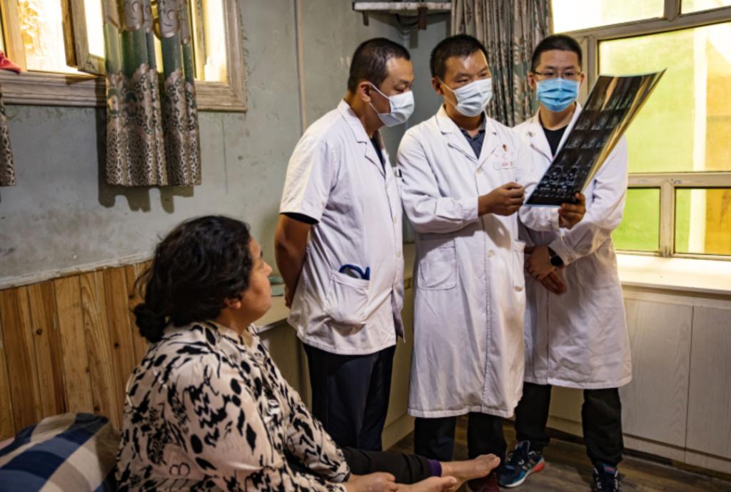 在工作队队员的指引下,医疗专家组入户回访